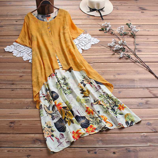 Blumenmuster-Maxikleid mit Korsett-Schnürung