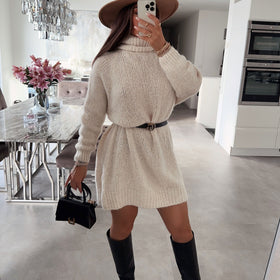 Beige Rollkragen-Kleid Kacia
