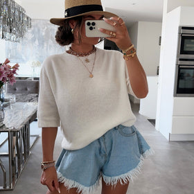Weißes Dreiviertel-Alpaka-Shirt